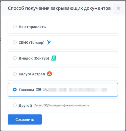 2.1. Выбрав свой вариант, впишите идентификатор участника ЭДО. Как узнать идентификатор участника ЭДО, говорится в сторонней статье на эту тему. После указания идентификатора нажать «Сохранить».