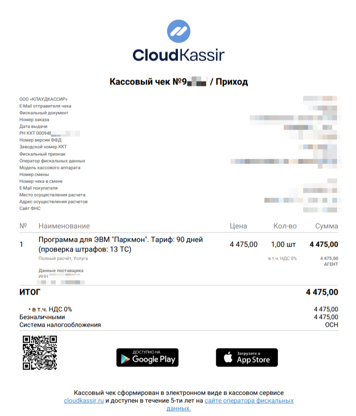 При использовании карты для оплаты наш партнер (CloudPayments) отправляет квитанцию (чек) об оплате на электронную почту. Потому, если потребуется найти такой документ, ищите письмо со словами «CloudCassir» или «CloudPayments» / «КлаудКассир», содержащее подобный документ. Если не нашли, то можете обратиться к нам.