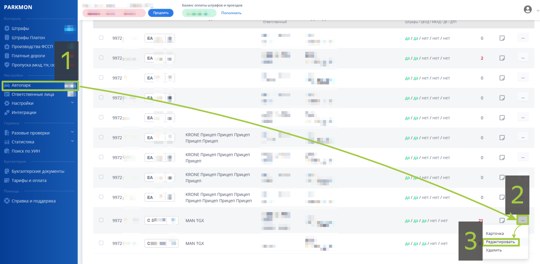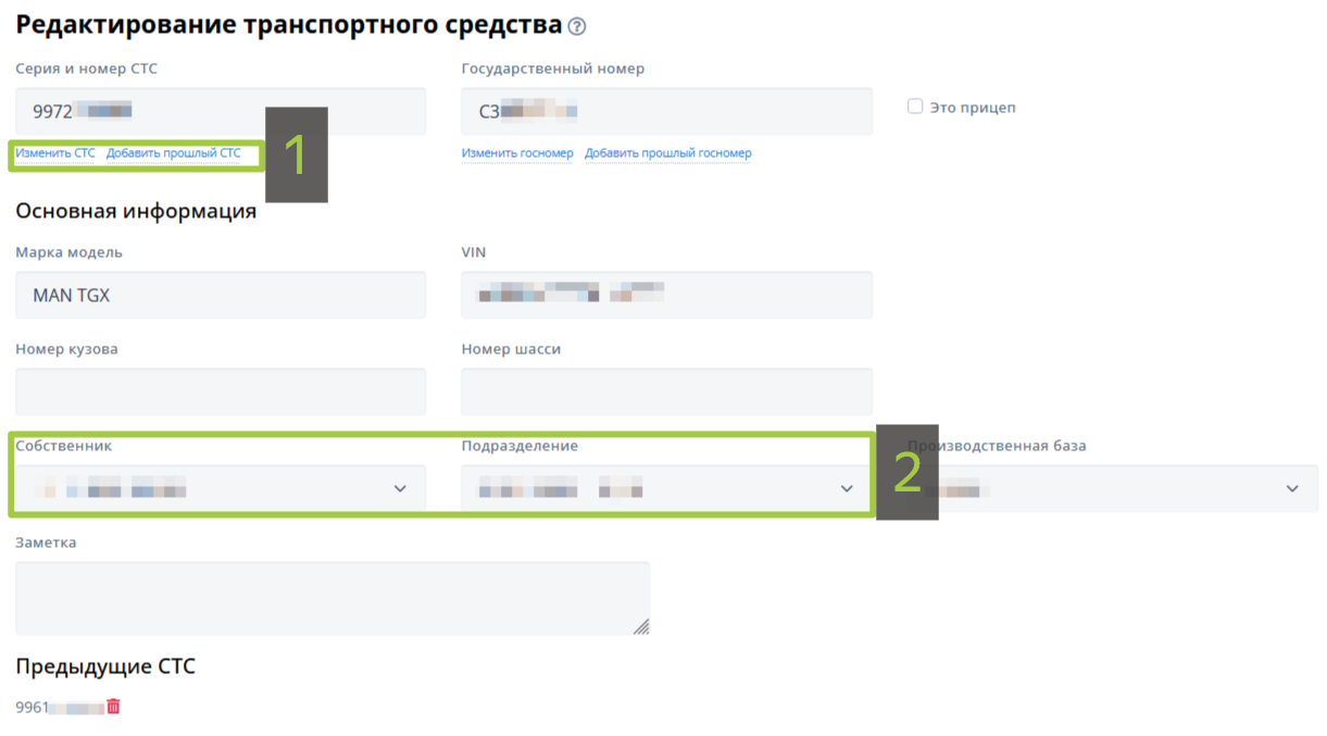 Бывает, что не внесён номер СТС в карточку транспортного средства (далее — ТС), особенно если добавляли самостоятельно. Убедитесь, что номер СТС искомого автомобиля внесён в его карточке в разделе «Автопарк»:
