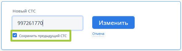 - В самом верху поле СТС. Вы можете изменить его, а также добавить предыдущее (прошлое). Если прошлого не помните, то при изменении СТС на актуальное предыдущее СТС станет прошлым. Лучше нажимать на галочку «Сохранить предыдущее СТС», дабы в будущем не возникало проблем с идентификацией автомобиля.