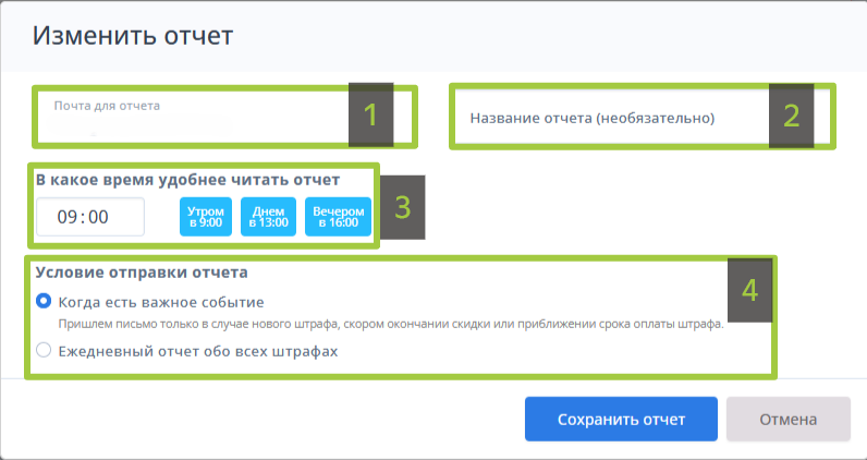 • Ежедневный отчёт — Каждый день — только если есть штрафы или задолженности. Если всё чисто, отчёт не придёт.