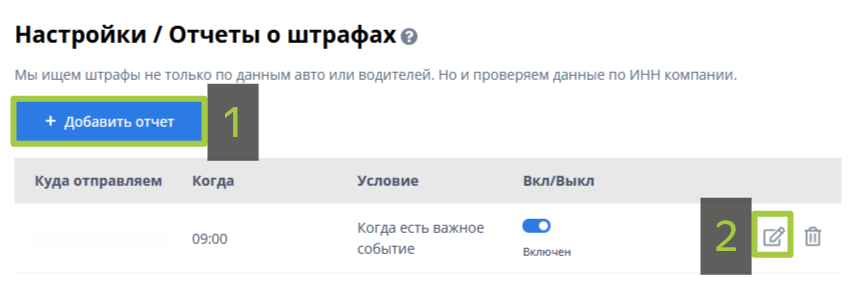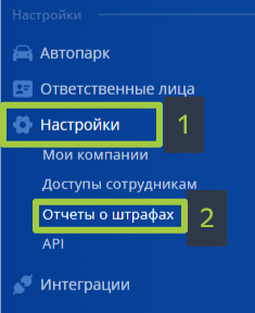 Попасть в настройки отчётов можно по этой ссылке. Также важно понимать где они находятся в личном кабинете “физически”: НАСТРОЙКИ > ОТЧЁТЫ О ШТРАФАХ.