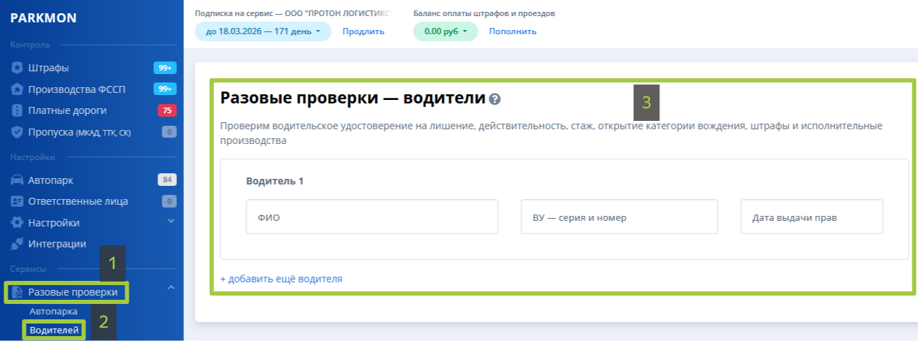 В личном кабинете «Паркмон» есть два основных способа проверить информацию о штрафах по водительскому удостоверению: