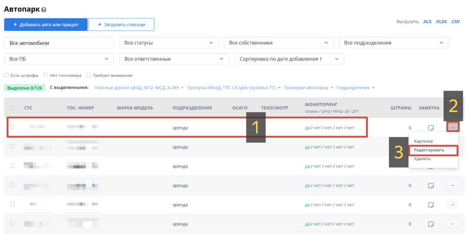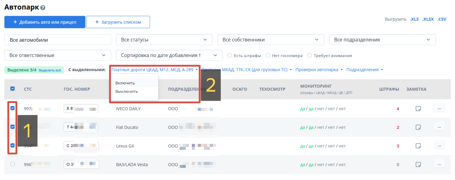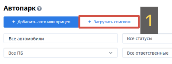 2. Массовое добавление и выгрузка ТС из «Автопарк».