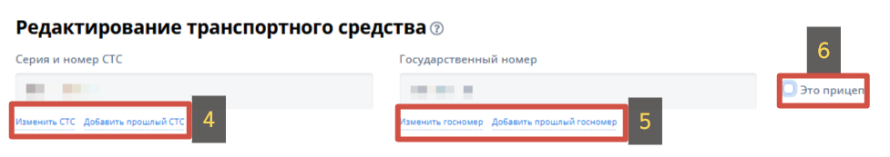5. А также изменить госномер или добавить прошлый госномер (под цифрой). Обратите внимание, что если госномер изменился — лучше удалить эту машину через «Три точки» > «Удалить» и добавить по новому госномеру заново.